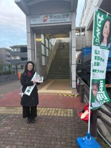 地元万願寺から朝の駅でのごあいさつ・政策の訴え・チラシ配りを始めました。